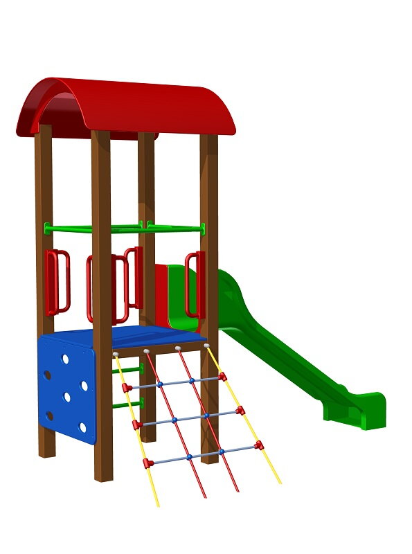 Herní sestava je vyrobena z konstrukční oceli (na přání zákazníka z nerezové oceli). Konstrukci tvoří čtercové profily o rozměru 100x100 mm, které jsou ukotvené do betonových patek. Konstrukce je opatřena žárovým zinkováním a následně vypalovanou barvou KOMAXIT v odstínu RAL. Podesta, střecha a lezecká stěna jsou vyrobeny z vysoce odolného polyetylenu (plastu HDPE). Lezecká síť je vyrobena z polypropylenových lan s ocelovým jádrem. Skluzavka je laminátová. Spojovací materiál je pozinkovaný nebo nerezový.